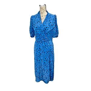 Vintage 1980s Women’s A-line Dress John Roberts Blue & Black Secretary Size 8