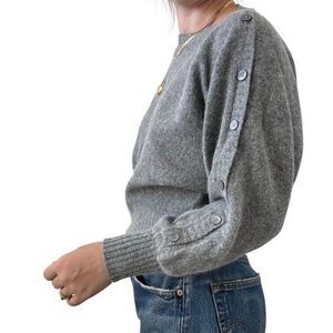 Vintage 1980s Womens Gray Angora Wool Blend Cropped Fuzzy Soft Sweater sz M