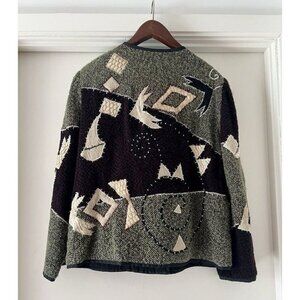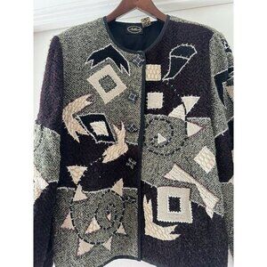 Vintage 1980s XL Woman ALLURE Brown Gray Geometric Patchwork Wearable Art Jacket