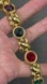 Fabulous 1980's bracelet of XO links made up of alternating gold plated X's and jewel tone O's of large brilliant rivoli rhinestones in red, green, purple and blue. The links are substantial as they are cast, not stamped out. Unsigned. 7 7/8" long so will fit a larger wrist
