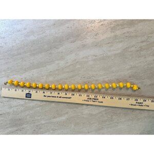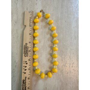 Vintage 1980's Yellow Beaded Necklace With Round & Oval Beads Choker Style