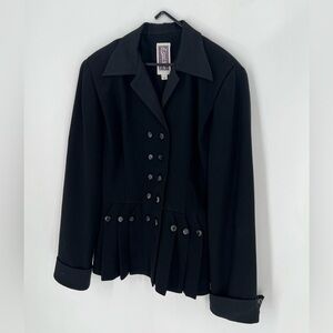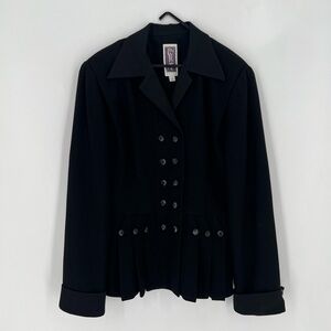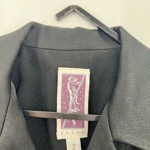 Vintage 1980s Zelda Military Pleated Double Breasted Button Jewel Blazer Jacket