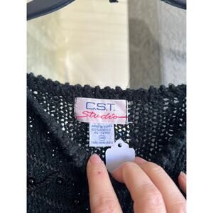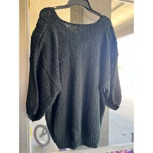 Vintage 1980's black short sleeve sweater with embroidery and beading around the collar. There are no stains, holes, or tears. The tag says size 46.