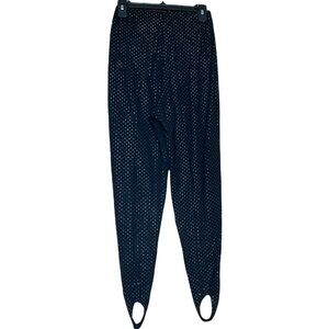Vintage 1980s embellish with silver white sequins in black fabric in size Medium. Set of top and bottom. The fabric is some sort of wool blend ideal for chill/cold weather/season Top is a long sleeve crewneck tunic T-shirt with padded shoulders, loose fit. Pants are high waisted with stirrup style foot. In great vintage condition.