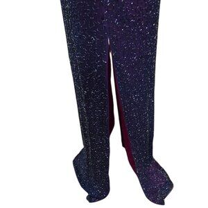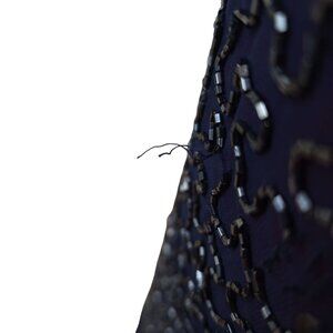 Vintage 1980's-90's Cache Beaded Formal Dress with Tie Halter Neck Purple-Blue
