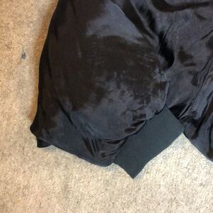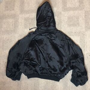 Shiny Rayon outer shell. Cropped hooded bomber with oversized sleeve detail. Rare statement piece from the 80’s. In excellent vintage condition. Zipper on the right pocket does not work. Please see all pics.