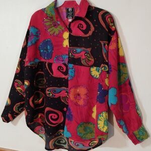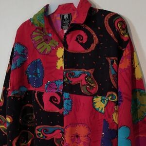 Vintage 1980's Short Circuit Beaded Mod Floral Printed Shirt