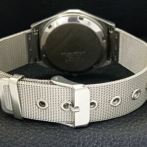 This watch has a stainless steel case in great condition with almost no flaws. The face features Silver accents on a Blue Face giving an awesome vintage look overall. It also has a date function!