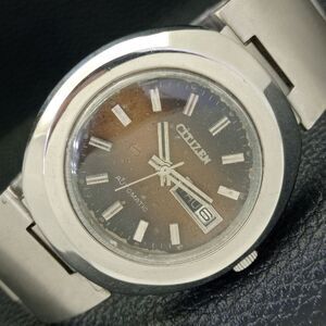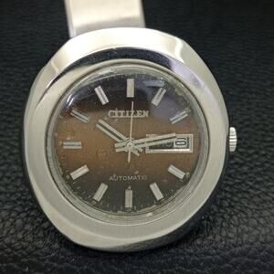 Vintage 1981 Citizen Automatic Mens Silver Watch W/daydate & Brown accents