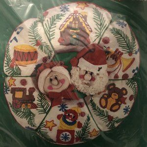 This is a vintage sealed 1981 Dimensions crewel embroidery kit. Kit #8005 and it’s a Mr. & Mrs. Claus Wreath designed by Arleen Hoeweler. It’s got the pure wool symbol and the finished size is approximately 14” in diameter. Kit itself measures 15x11” long.