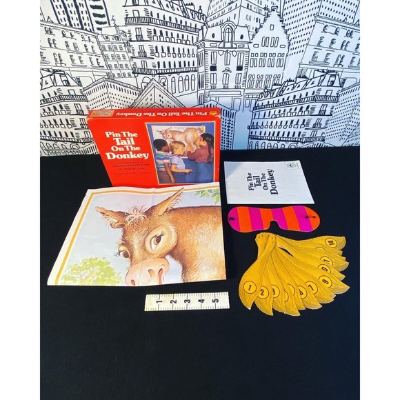 This vintage Pin The Tail On The Donkey party game was released in 1981 and has all of its pieces making the game fully complete.