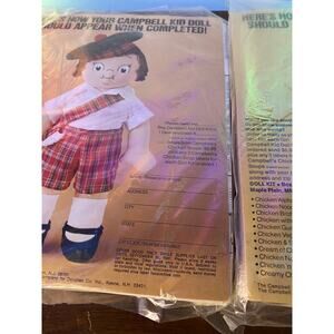 This vintage 1982 Campbell Soup Kid Cloth Dolls Complete Kit is a perfect for anyone who loves to make dolls. The dolls are made of high-quality cloth material, and the set includes an outfit for both the boy and girl doll. Lot of 2 complete kits. New in package. Smoke Free Home.