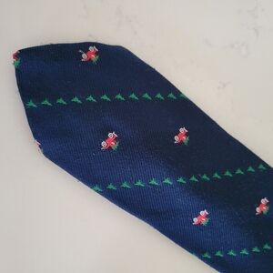 Vintage 1982 Christmas Holiday Tie Car Christmas Tree Alynn Neckwear Navy Green