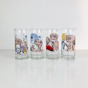 This Listing is for 4 Vintage ET Pizza Hut Glasses 1982 Universal City Studios, Inc.. Limited Edition Collector's Series. They were only available for a short time at participating Pizza Hut restaurants. Each glass features a moving scene from the classic Steven Spielberg movie.