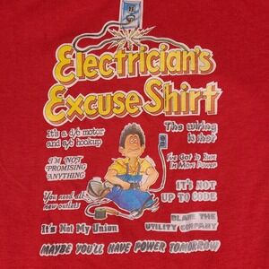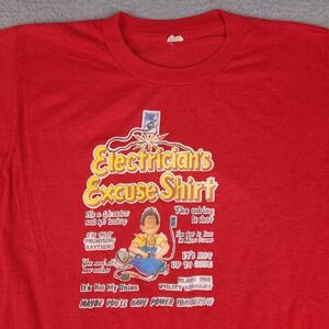 Vintage 1982 Electricians Excuse T-Shirt Mens Medium Red Single Stitch USA Made