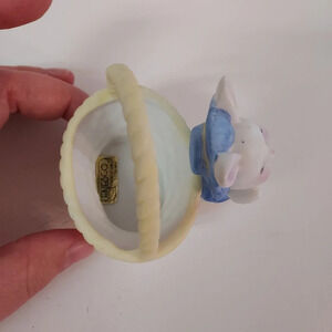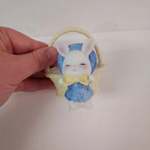 Vintage 1982 Enesco Bunny With Easter Basket Porcelain Bisque Figurine