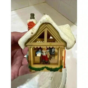 Measuring in at a small size and featuring all-over pattern, this ornament is perfect for hanging on a Christmas tree or displaying on a mantle. The piece is a licensed original from Hallmark and was produced in Hong Kong using plastic production techniques. Whether you're a fan of vintage holiday decor or simply looking for a unique and festive addition to your collection, this Santa's Workshop ornament is a must-have.