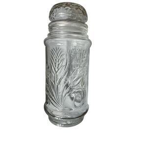 Vintage 1982 Planters Mr Peanut Glass Jar Wheat Sheaf Embossed Pattern w Lid