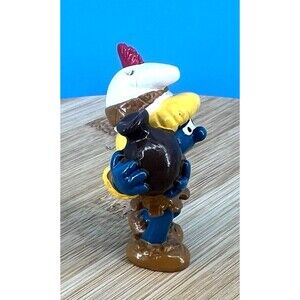 The product is a vintage 1982 SMURFS Native American Smurfette PVC figure toy, standing at 2 inches high. This collectible item is part of the cartoon franchise "The Smurfs" and features the character Smurfette in a Native American Indian outfit with a jug. It is an original piece from the 1980s, made of PVC plastic, and is a part of the Native American Series. This classic Smurf figure is a great gift idea for fans of the TV show or collectors of vintage toys, with free returns available for added convenience.