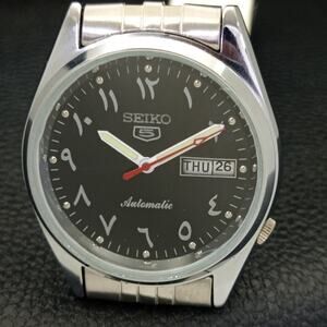 Vintage 1982 Seiko Arabic Automatic Mens Silver Watch W/daydate & Black accents
