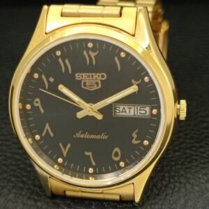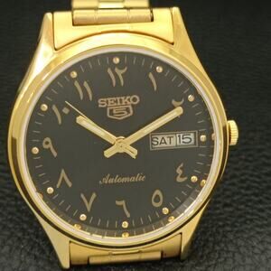 Vintage 1982 Seiko Automatic Mens Gold Watch W/daydate & Arabic accents