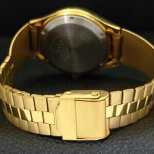 This watch has a stainless steel case in great condition with almost no flaws. The face features Gold accents on a Black Face giving an awesome vintage look overall. It also has a date function!