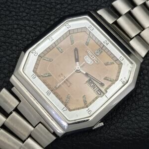 Vintage 1982 Seiko Square Automatic Mens Silver Watch W/daydate & Patina accents