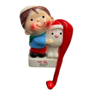 Vintage 1982 Sun Hill Stocking Holders Santa Claus, Boy Dog & Mouse Hanger