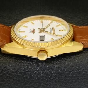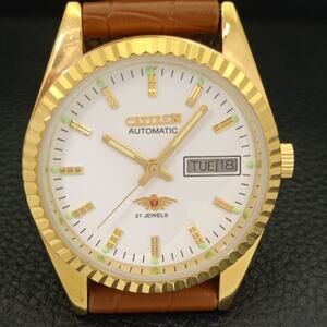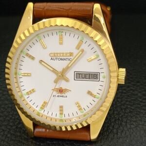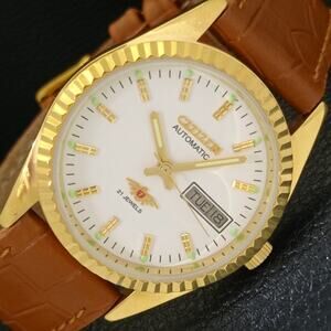 Vintage 1983 Citizen Automatic Mens Gold Watch W/daydate & White accents