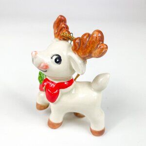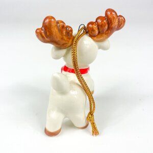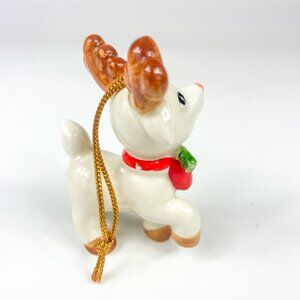 Vintage 1983 Ebeling & Reuss Ceramic Reindeer Christmas Ornament With Red Bow