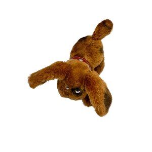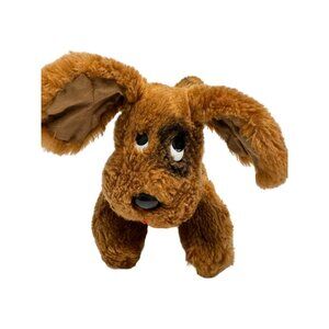 Charming vintage 1983 brown floppy puppy dog plush from Graphics International. With an emotive pair of sad eyes, this 7-inch toy comes from a smoke-free home.