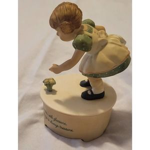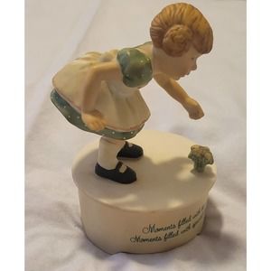 Hallmark music box musical collection series. Girl picking flowers. Hand painted fine porcelain. Schmid plays "Edelweiss" by Roger's and Hammerstein. " Moments filled with beauty, with happiness, with pleasures. Moments filled with special dreams make days to always treasure. " measures 5 3/4" tall and 3 1/2" across. Pre owned. Excellent condition.