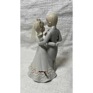 Add a touch of romance to your collection. This hand-painted porcelain piece beautifully captures a loving couple on their wedding day, making it a perfect keepsake or gift.