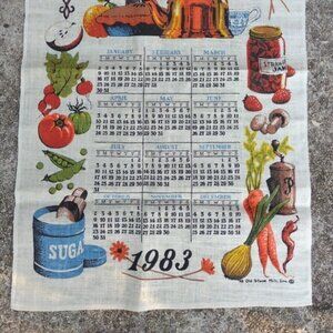 Vintage 1983 Linen Calendar Tea Towel • “My Kitchen Best” Quote • Retro Wall Art