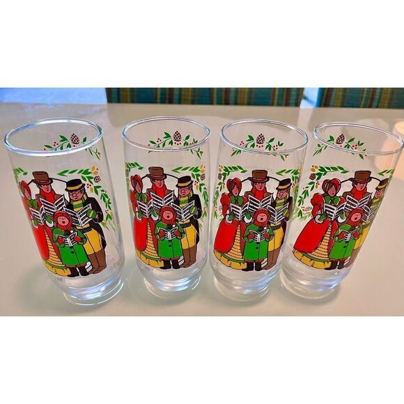 Vintage 1983 Pepsi Christmas Caroling Glass Cup Merry Christmas Holidays Set of 4