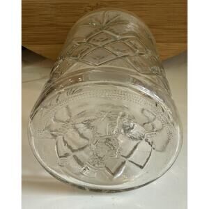 This vintage 1983 Planters Mr. Peanut glass jar lid canister features an embossed diamond pattern, making it a unique collectible item for fans of Mr. Peanut and Planters nuts. The clear glass design adds a classic touch to this original piece from the United States, perfect for displaying in a collection or using as a functional storage container for candies and nuts. A nostalgic piece of advertising memorabilia that captures a piece of history from 1983.