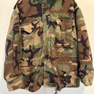 Vintage 1983 U.S. Army M-65 Field Jacket Large Woodland Camo Alpha Industries
