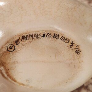 This charming fish-shaped ceramic tea pot, crafted in 1984 by Animals & Co., features a hand-painted design with blue and cream tones. Its bamboo handle adds unique vintage appeal and functionality. A delightful addition to any collector’s display or decor.