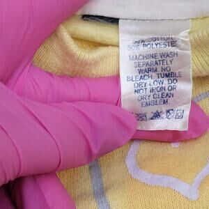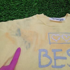 Vintage 1984 Best-Friend On Earth Sweatshirt Womens S/M 18x23 Yellow Raglan USA Made Cotton Poly Fleece Lightweight Tie-Dye Paint Splatter Style 80s