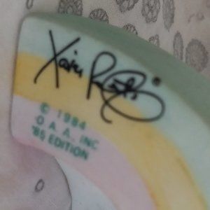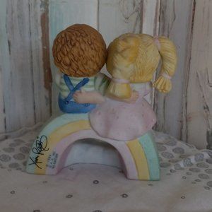 This is a 1984 Cabbage patch kids figurine. It stands 3 5/8" tall and has the original makers sticker on the bottom. There are 2 kids with lollipops sitting on a rainbow and the words "Be My Sweetheart!" across the bottom front. It is in excellent condition and ready to find a new home!