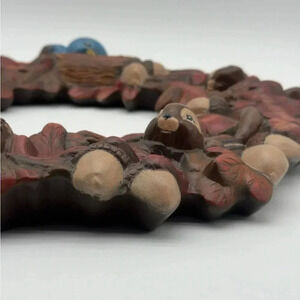 Vintage 1984 Ceramic Harvest Autumn Fall Chipmunks Acorns Leaves Birds Wreath