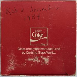 This vintage Christmas ornament features a classic design with a handblown glass ball featuring a Santa figure drinking Coca Cola. It is perfect for collectors or anyone looking to add a unique touch to their holiday decor. The ornament is made by Corning Glass Works. It is suitable for Christmas occasions and is sure to be a standout piece in any collection. This item is a must-have for anyone who loves vintage Christmas decorations and is looking to add a touch of nostalgia to their home. Manufactured in USA in 1984.