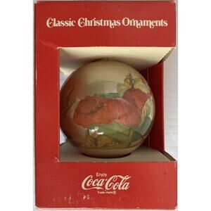 Vintage 1984 Classic Christmas Ornaments Glass Ball Santa Drinking Coca Cola
