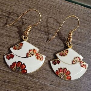 #Vintage 1984 #Cloisonne Dangle Earrings Floral 1.25" long.