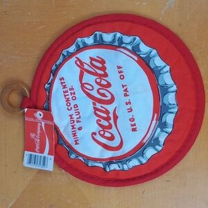 Vintage 1984 Coca-Cola official licensed set of 2 with tags hanging pot holders are in good shape with normal vintage storage wear that has been pictured. Would come out easy. No hole's no stains, no loose threads, no fade, no wear. Great graphics