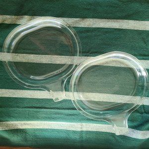 Gently used set of 2 clear glass Corning Pyrex Microwave Plus "Grab It" serving dishes. Perfect size for reheating food in microwave or oven, including convection ovens. Not for stovetop or broiler use. Set M-600 from 1984, dishes measure 6" x 7 1/2 ". Dishes are marked with the Pyrex logo, and the item #600B.