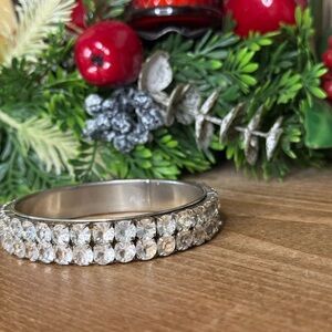 This stunning silver bracelet features sparkling crystals, perfect for adding a touch of elegance to any outfit.