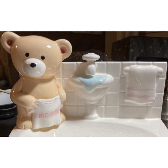 Vintage Ensconced Soap Dish Teddy Bear at sink