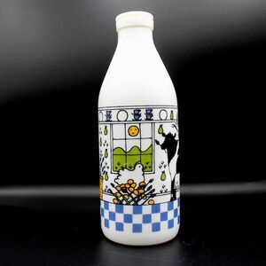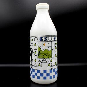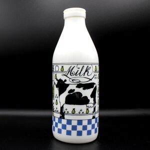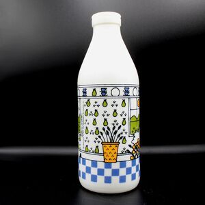 Vintage 1984 White Glass Milk Bottle Jug by artist Alan Wood made exclusively for Lillian Vernon Made in Italy