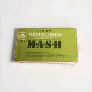 The Vintage 1984 Golden Trivia Cards M*A*S*H Edition is a complete set of party game cards featuring questions related to the popular TV show "M*A*S*H". With a minimum of 2 players, this nostalgic game is perfect for fans of the show looking to test their knowledge and reminisce about the classic series from the 1980s. Produced by Golden, known for their quality game products, this trivia card set is a must-have for collectors and enthusiasts of vintage games.